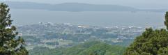 上杉謙信がこの七尾城を落としたとき、本丸から眺めた眼下の景色に感嘆したというが、当時は木がなくて、180度見渡せたのであろう。現在は木が邪魔をして七尾湾 の一部しか見えないのは残念! |