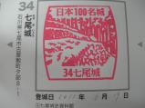 スタンプ35個目。高岡城から氷見を経由して七尾まで。資料館でスタンプを押してから、間違えて遊歩道を車で登りかけバックで戻ることに。案内板に遊歩道とか徒歩とか書いてくれればいいのに..。七尾城の石垣も岩村城に劣らず見事。展望台から本丸が見えるので、望遠レンズをお持ちの方は、ぜひ。 |