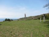 | 麓の資料館でスタンプ 、本丸から遠くに展望台が見えました。 バイクで巡りましたが、資料館のおじさんと話はしたものの、入りませんでした。 |