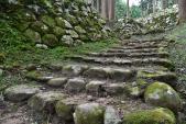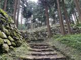 | 初登城、天気雨。 高さのない連なった石垣が特徴。 二の丸と三の丸の間の堀切も見事。 |