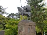 | 見どころは石垣です。 城内案内所にある石垣巡りに関するパンフレットでは、城内ルート1.5kmのコースが示されており、 このコースでは野面積み、打ち込みハギ、切り込みハギの石垣を観賞することができます。 この城は、兼六園とペアで回りたいですね。 金沢城の近くにある尾山神社は、利家公がご祭神となっています。 神社神門は、和洋折衷の建物で、夜はステンドグラスがとてもきれいです。 また、赤母衣衆時代の利家公の銅像があり、銅像好きにはオススメです。 |