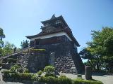 | 高速道路より 天守閣が見える こじんまり 格好の良い天守。 観たかった水切り屋根 ;あったー;。 天守閣急階段だがロープがあり 楽に上がれるが 狭い注意。バス停は目の前。 |