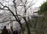 | ツアーでの参加。午後3時頃だったので花見客も一段落というところ。桜は満開で、天守とマッチしていました。 |