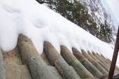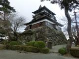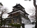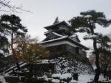 21城目。金沢からの帰途立ち寄り。北陸自動車道を丸岡ICでおりてすぐ、約5分ぐらい。駐車場もきれいに整備されており気持ちよく登城できた。雪中のこじんまりとした天守は好感が持てる。この城の瓦が変わっています。石瓦といい、風雪に耐えるために用いられたようです。 |
