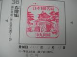 | 前日に福井駅前に投宿。 朝から京福バスで本丸岡へ(約40分,640円)。 本来はここが終点なのだが、折り返しの福井駅前行きが丸岡城近くを通るそうだ。 今回は本丸岡のバスターミナルから歩いて約10分で丸岡城へ。 天守閣下の受付でスタンプを借りて押印。潰れていて状態悪し。 大きくはない天守であるが、武骨な感じで趣きあり。 流石は現存天守。 |