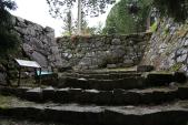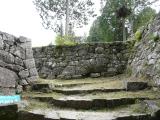 25城目 38番 岩村城 登城 高速道恵那ICを出て山間の道をしばらく進むと岩村歴史資料館に着く。そこでスタンプをGET。職員の方に道順の説明を受ける。更に曲がりくねった狭い山道を進むと山頂付近に駐車場に着く。そこから石垣が見えてくる。この山頂付近一帯には大規模な城郭が構えられている。本丸の六段の石垣、本丸埋門、本丸、出丸、東曲輪などを見て回る。正に日本一高い地に築かれたお城も頷ける。 |