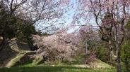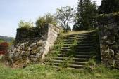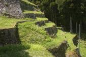 標高717mに築かれた山城で、岩村駅から徒歩50分だが、前半旧藩主邸(岩村歴史資料館)までが古い町並み、後半の山道が山城の雰囲気を味わうことができる。山道は100mごとに標識がある。ちょうど桜の季節で花が山城に趣を添える。途中石垣が楽しめるほかあちこちに井戸があるのが印象に残っている。本丸まで登り、帰りに岩村歴史資料館で押印。 |