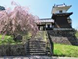 | 31城目 岩村駅から歩いて登城しました。 城下町はとても良い雰囲気で、町ぐるみでお城を守っているような感じです。 スタンプ設置場所の歴史資料館は藩主邸の跡地にあり、再建された表御門や太鼓櫓が出迎えてくれます。 日本三大山城と言われるだけあり結構登りますが、六段石垣やちょうど見頃の桜など見所が沢山あり、じっくり見ながら歩いていたら駅から本丸まで二時間かかりました。 本丸の音声案内は100円を入れたらいきなり大音響のスピーカーから流れてきてびっくりしましたが、女城主の悲話など、色々興味深いものでした。 |
