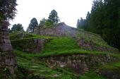 北陸信越城廻り11城目。まずは歴史博物館でスタンプゲット。そこに車を止めたまま、登城口から徒歩で天守閣を目指す。これが非常にきつい。結構急勾配な道を登るのですが、息は絶え絶え、汗はダラダラ。途中でやめようかと思いました。本丸まで〇mと看板があるのですが、登られる方への参考までに、特に前半がきついです。残り400mの立て板を過ぎると、勾配がかなり楽になってきます。しかし、これまでの山城で一番辛かったです。さすが日本一標高が高い城。昔の方はよくこんなところで住もうと思ったもんです。毎日大変だったとおもいます。登りきると、東洋のマチュピチュ(最近は竹田城の方が有名ですね)と言われる、見事な階段状石垣が出現。苦労した甲斐がありました。でも実は、裏側から車で本丸近くまで行けたという事実をしり、愕然としました。 |