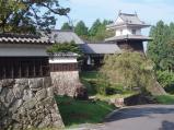 ずいぶん回り道をするような感じで山頂の城跡へ。日本三大山城と言われるだけのことはあり、六段壁など見事な石垣です。表御門の隣の建物で若い娘さんたちが太鼓を打っていました。町のあちこちに「女城主の里」という看板があるけれど、その説明は見当たらず残念…。 |