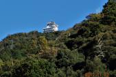 | 13城目。 あいにくの天気でロープウェーで山頂に上がっても霧がかかって、天守もよく見えませんでしたが、下山して見上げると霧も晴れ、山頂の天守をはっきりと見ることができました。 |