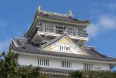 | 33城目 岐阜県岐阜市の岐阜城へ。 ここは一時期織田信長の居城だった城で、天下統一への足がかりとした所。また歴史でも習う「楽市楽座」を信長が進めたのも岐阜城のある金華山(かつては稲葉山と呼ばれていた)の麓だ。 ロープウェイを使って金華山を登り、尾根伝いに10分程歩くと岐阜城天守閣。 鉄筋コンクリートで復元された天守で当時の姿とも違ったものとの事だが、何と言ってもここは眺めが最高。360°遮るものがないここからの景色はここまで登城した天守閣の中では随一だ。 また麓には「岐阜市歴史博物館」があり、古墳時代から現代までの資料を展示あるいはタッチパネルを使って解説をしたり、また信長の時代の楽市の町の様子を再現したセットなど子供も楽しめる。 |