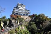 岐阜城106城目。金華山の山頂にそびえる天守。ロープウェーで山頂へ。濃尾平野を一望できる。麓には発掘された信長の居館。 |