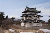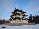 | 八戸から新幹線・奥羽本線を乗り継ぎ弘前駅へ。 当日は強い寒気の影響で積雪ありの状況でした。最高気温も1℃と凍てつくような寒さでした。 公園内も一面雪が積もっている状態で、回るのにかなり時間がかかってしまいました。 やはり現存天守は小ぶりでも存在感があり素晴らしいです。 天守もですが、弘前公園は5つの現存している立派な櫓門も見応えがあります。 桜で有名な弘前公園、雪景色もなかなか趣がありました。 ただし、雪対策をしておらず靴はびしょびしょになってしまいましたが… |