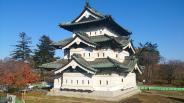 | 東北地方には珍しく紅葉が遅く、いつもと違う場所に移されている天守閣。4度目で初めてスタンプ押印 |