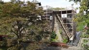 天守閣が曳屋中でした。 |