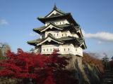 | 57城目 北東北6城訪問最終日 今日は弘前、久保田城を訪れる。費用削減の為前日は駅から城とは逆方向の徒歩25分位の慢喫に泊まったので、朝6時半頃から城に向かう。 駅からなら徒歩25分もあれば充分に辿りつきます。天守内は9時から(本丸の敷地内もその前なら自由に入れる)なので周りから散策。弘前は戦災をうけなかったので広大な敷地(四の丸まであり)がほぼ当時のまま残っています。現存の門と櫓もすべて見学。敷地内を地元の方が散歩や高校生が自転車で通学していました。 盛岡城と同じで紅葉もすばらしかったです。天守内は皆さんの書き込み通り小さいですが現存なので雰囲気があります。近くに落雷で焼失した天守の天守台がありますが、5層の天守にしては少し小さい印象を受けました。 11月24日から天守内の見学は冬季休業期間になりますが、この期間も敷地内には朝早くから入れるようなので見学には問題ないと思います。 見学後禅林街と五重の塔を見に行きましたが、前者は雰囲気があるが何かきれいすぎる感じがしました。朝から昼前までいたが、紅葉がきれいだったこともあり写真を200枚以上撮っていました。 |