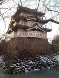 | 早朝より弘前へ 朝早すぎて、バスが動いていない。もう3度目なので駅から歩く。 天守の開館は時間厳守。 政務の色彩が強く、機能的な天守に感動。 |