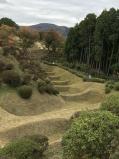 | 東京から、東海道線を乗り継いで、三島駅。みしまる切符のバスで30分。 きれいに整備されていて、まるで公園のよう。山城で、傾斜があり楽しく散策。有名な障子堀も芝生におおわれて美しい。ベンチで昼食をとるも、残念ながら富士山は見えなかった。小田原城の支城として、鉢形城・八王子城に次いで3城目。 |