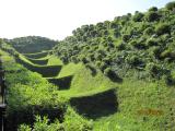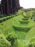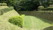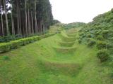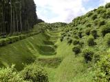 | 芝を生やして畝を保存するというのは、棚田をみるように美しい。とても良いアイディアだ。 出会いがしらに1m程度のヤマカガシ(蛇)に遭遇して、少し驚いた。 登城の際には、毒蛇に注意しましょう!? ※ヤマカガシ:マムシよりも強力な毒を持っている。 |