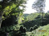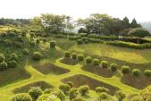 沼津ICより国道1号で山中城案内所・売店のPに駐車しスタンプ押し(かなりくたびれているようなので、慎重に押しましょう)。案内図をもらい「戦国山城探訪コース約2時間」通りに周りました。岱崎出丸ー三の丸堀ー二の丸橋ー西の丸ー西櫓ー北の丸ー本丸(天守台)−兵糧庫ー二の丸ー宗閑寺と、1時間20分程で周りました。実際に激戦のあった場所で、現在は芝やつつじ、木々が生え地形を包んでいますが、往時はローム層が剥き出しでさぞ、殺風景だったでしょう。生活にも不便なのはもちろんですが、戦闘においても、街道を取り込み長くなった防御ラインで、数万の豊臣勢を体系的に防ぐのは無理だったようで、時代の終焉、変化を象徴する城のようです。きれいな植木が想像力を削いでしまっていますが、本来、なかった物をなかった物として想像すれば、当時にタイムスリップできそうでした。 |