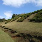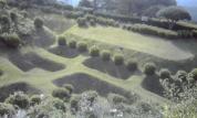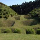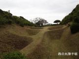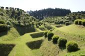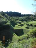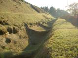 | 北条の城。芝に覆われた障子堀など特徴的な遺構。 |