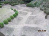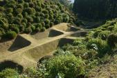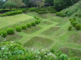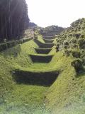 | 34城目。三島から路線バスで箱根へ向かう途中、山の中腹にありました。 障子堀や曲輪内の草が短く刈り込まれており、緑の絨毯のようでとても美しかった。 また、いたるところから富士山や駿河湾が遠望でき、景色も最高でした。 石垣はありませんでしたが、土手や堀などがきれいに整備されていたので、この城の縄張りが非常によくわかりました。 思っていたよりもいい城でした。 |