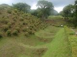 | 2013/7/13 箱根フリーパスを購入し、箱根登山電車、ケーブルカー、ロープウェイ、観光船と乗り継ぎ、箱根町から山中城址に向かいました。 山中城址の堀は素人にもよくわかる、障子堀になっています。 スタンプは売店にありますが、インクが薄く最悪でした。 2015/9/21 シルバーウイークを利用し、前回スタンプで失敗した山中城へリベンジに行きました。 先ずスタンプを押しなおした後、今回は時間があるので、「戦国山城探訪コース」を一通り見て回りました。前回は障子堀と畝堀の違いも知りませんでしたが、2年経つ間に少しは知識が増えました。帰り、山中バス停から三島駅までバスで帰ろうとしたら、軽乗用車が電柱に突っ込んだみたいで、1号線は大渋滞になっていました。(写真右側は今回撮った西ノ丸の障子堀) |
