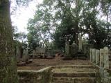 | 3城目。 北条築城術を堪能できる山城です。畝掘りや障子掘りは見事です。 各曲輪を見てまわるにつけ、ここを1日で落城せしめた豊臣軍の果敢な城攻めに脱帽する想いです。 三ノ丸跡に建つ宗閑寺にて、しばし山中城合戦に想いを馳せました。 この寺の開基は、この城を縄張りし、ここで討死にした間宮康俊の娘お久の方。 間宮康俊等北条方武将と豊臣方武将の一柳直末の墓を並べて建てています。激戦とは対照的な趣を感じます。 北条ファン以外には名が知れていない間宮康俊ですが、合戦後娘のお久の方は家康と四女を産み、更に後年には間宮林蔵を輩出するなど家名を残しました。一方の一柳直末は、討死の報を聞いた秀吉に「城を攻め破ると候えども無益。関東にも代えまじき伊豆守也」と言わせるほど秀吉の信望厚い武将。明治期には一柳家子孫が荒廃したこの墓を双方武将隔てなく整備し直したと言います。きっと間宮も一柳もあの世で並んで酒を酌み交わしているのだろうと想像しました。山中城に行きましたら、宗閑寺にも立ち寄ることをお勧めしたいです。 |