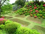 | 天気は晴れ。三島駅南口の観光案内所でパンフを入手後、バスで「山中城跡」に到着し、朝10時から戦国山城探訪コースに沿って登城開始。 岱崎出丸では行く先々の敷地ですべての芝生の手入れが良くされていて、まるでゴルフ場の様でした。又、一の堀は始めて見る畝堀でとても感動しました。 見所は何と言っても西の丸、物見台、西櫓を取り囲むようにある畝堀、障子堀でしょうか。良く剪定されたツツジの木が沢山植えられていて何とも絵になる光景を随所で堪能しました。目の前の堀を見ながら、鶯の鳴き声を聞きながら休憩所近くのベンチでお弁当を食べ、正に至福の時間を過ごしました。 実は、横浜からの電車の中で、池波正太郎著「戦国幻想曲」の小田原攻めの部分を読み返し、半日で落城した山中城での主人公渡辺勘兵衛の槍働きを現場で想像しようと思っていたのですが、この企画は失敗に終わりました。次から次へと素晴らしい景色が目に入ってくると、昔を偲ぶ事より眼前の景色に感嘆している自分を発見しました。 スタンプは売店の外と中の両方に置いてあり、共に良好でした。帰りに三島名物のうなぎを食べて帰路につきました。 |