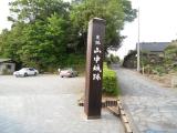 | 山中城へは三島駅よりバスに30分ほど乗り、「山中城跡」下車すぐです。私は往路は11:15発のバスに、復路は12:40発に乗車しました。往復とも1時間に1本です。 私はスーツに革靴で、50分ほどですべて廻ることができました。が、山道は少しぬかるんでいて、何度も滑ってころびそうになりました。今日は晴れていましたので、富士山がきれいに見えました。 |