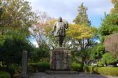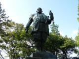 | 復元された門を抜けると広い公園でした。みかんを護るかのように家康像が立っていました。 |