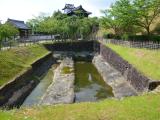 | 《63城目》1泊2日で掛川城・長篠城・岩村城を攻略。東京駅こだま始発で掛川8時11分着。徒歩で大手門・大手門番所⇒市立中央図書館脇から報徳図書館・大日本報徳社を外から見学⇒9時開城と共に掛川城天守閣⇒御殿(受付にて100名城スタンプ)⇒三日月堀⇒十露盤堀⇒太鼓櫓⇒四足門⇒竹之丸⇒JR掛川駅10時16分発普通電車でJR豊橋着11時17分着(新幹線使用でも飯田線は同じになるので)。 近くで見る太鼓櫓や天守閣、四足門は、新幹線から見える景色と違い迫力がある。現存御殿は、川越城本丸御殿に比べて地味で武骨な感じだが、当時の武士の生活がうかがえ数々の映画ロケに登場している。 城内は日陰もなく、施設内に冷房もなく(当たり前だが)夏の訪問は厳しい。早朝のせいか駅付近に涼むカフェもなく汗まみれの掛川だった。写真は大手門・四足門と三日月堀・十露盤堀。 |