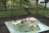 | 天守閣修理中で、本丸にさえ入れず。 現存四御殿の高知城、川越城と見てきたが、掛川城も良かった。特に展示されていた参勤交代の模型が良い。L字方に模型が展示されており、じっくり眺めてしまう。 大手門と番小屋を見学し、駿府へ向かう。 |