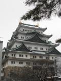| 雪化粧した金のシャチホコを撮るため朝一番に駆けつけましたが、すでに先客がちらほらいらっしゃいました。名古屋で雪が積もることは近年珍しいので、今日も早起きした甲斐がありました。 |