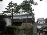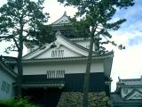 | お城の駐車場に止めて,入口を入ると正面に葵の紋がど〜んと見えます。(資料館です) 堀をめぐっておくに進むと天守閣があります。 |