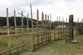 | 城址の脇をJR飯田線が通過しています。設楽原古戦場と一緒に見学。馬防柵が再現されていました。 |