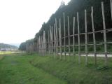 第36城目。豊橋駅から豊川稲荷経由で、長篠城に。長篠城址史跡保存館をみて、雨の中、長篠城跡(本丸)を見て回ったが、土塁・堀をのぞけば城という面影はほとんどなく昔の武田・織田の攻防がうそのようである。このあと設楽原(したらがはら)歴史資料館に移動して、長篠・設楽原の戦いを勉強して、近くの馬防柵を見学して帰路。写真は、長篠城址史跡保存館入口(ここにスタンプあり)、設楽原歴史資料館の屋上から見た馬防柵、でその馬防柵。 |