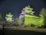 | 前夜の雪で足元が白く染まる中、朝イチで登城。天守は再建されたものですが、90年前の木造で、コンクリートの再建天守で感じる冷たさが全くなく素晴らしい。 本丸西面の高石垣は直線的な勾配が特徴で高さが30メートル近くあり。上から覗き込んでも堀を挟んで見上げても圧巻の一言でした。 |