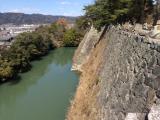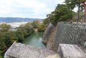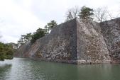 | 前評判通り西側の高石垣がとても素晴らしかったです。ロープがはってましたが、ちょっとだけはみ出して見てしまいました。 日本で一二を争うという謳い文句でしたが、確かに堀のなかまで含めるとそうなのかもしれません。 天守は、昭和10年に建設したそうですが、復元ではないにせよ歴史の重みを感じさせる立派なもので、町の人たちの自慢の城なんだろうなと思いました。でも、天守の入場料が500円というのは、ちょっと高いかな。 |