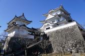 金沢から上野市駅へ行きました。空の色が全然違います。こちらは、とても良い天気です。観光案内所で地図を戴き、筒井城跡〜石垣〜天守でスタンプを押しました。俳聖殿〜内堀越しに高石垣を見て、上野高校敷地内の旧武器庫、旧崇広堂〜西大手門跡〜上野市駅へと歩きました。もっと時間をかけて周りたかったです。 |