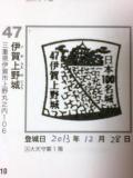 40城目。青春18切符にて。名古屋-亀山-伊賀上野-伊賀鉄道ピンク忍者号?にて上野市駅へ、駅から地下道を通って徒歩5分。日本最古の木造模擬天守の入り口にてスタンプゲット。見所は、高石垣と横山大観の天井の月。次は松阪城へ。 |