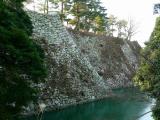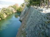 | 23城目。京都から約2時間で到着。 とにかく石垣が見事です。 堀沿いに回り込んで天守側を見上げようとしましたが、 木がちょっと邪魔。 |
