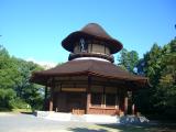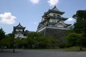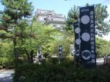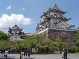 | 【63城目】 高石垣に目が眩み近寄れない(柵がなくて足を滑らしたらアウト)。 天守は木造による復元でとても良い。 3館セット券を購入したので、この後に忍者博物館&だんじり会館も見学。 天守より忍者博物館の方が人気で、売店でゴム製のレプリカ手裏剣がよく売れていた。 |