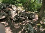| 86城目。雨だったけど、少し弱まったのを見計らって登城。下から奥地の大嶽城まで行くことにした。最初は本丸の方から進むことにして、曲輪を片っ端から見に行った。本丸の奥には大石垣もあり、直前に行った鎌刃城より規模がでかく流石100名城と感じた。その後は雨も降り出してきたが、戻る気も起きなかったので、そのまま大嶽城に向かった。その道中の月所丸への道は、かなり狭く、崖横だったので険しかった。その後も登り続け、汗だらけになりながら大嶽城へ行った。山頂によく土塁が残っていた。帰りに福寿丸、山崎丸をよって下山した。早足で行ったため、3時間もかからなかった。途中で気づいたけど、熊鈴忘れてきてたため危なかったが、何も起こらなくてほんとによかった。 |