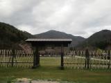 | スタンプ設置場所の小谷城戦国歴史資料館の開館時間は午前9時半からです。追手道を登り本丸跡まで行ってきました。途中、琵琶湖が見える望笙峠があり、写真を撮りました。 後で調べたところ、琵琶湖の竹生島が最もよく見える場所ということで、地元保存会が望笙峠と名付けたそうです。本丸は石垣に囲まれていたと古絵図に書いてあったが、石垣は見られなかった。 |