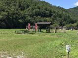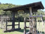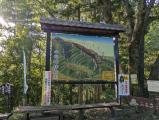 | 38城目。戦国時代資料館の駐車場にレンタカーを停めた。スタンプ押印する。ここからも本丸跡に行けるという情報があったので、ここから登城することにした。脇道に扉が閉まった柵があり、入れないのかと思ったが動物の侵入を防ぐためのものだった。先週末に台風がきて大雨だったせいか、脇道だったせいか、道の状態はあまり良くなかった。その上、猛暑であり番所跡に着いたときにはへばってしまい、本丸跡にいくのは断念した。 |
