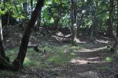 | 9時47分河毛駅。隣接のコミュニティハウスで自転車を借り、戦国歴史資料館の前売券を買って20分ほどで資料館到着。スタンプを押し、地図などを手に入れ、30分ほどいて追手道から登山開始。険しいながらも遺構が残っていて雰囲気あり。途中でガイドさんらしい人との2人連れと出会い、「登山する格好じゃない」とからかわれながら親切で詳しい説明を聞きつつ同道しました。こういう「一期一会」は嬉しいものです。六坊でさらに上を目指す2人と別れ、清水谷を降りて13時ころ下山。迷いながらも急いで河毛駅に着き13時22分の電車に乗る。 |