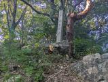| 前泊した敦賀市内から北陸本線でJR河毛駅まで移動、駅でレンタサイクルを手配。途中、後ろ髪引かれながら小谷攻めの前線基地・虎御前山を通過、小谷城戦国歴史資料館を目指す。 順当に追手道から登城を開始すると、いきなり猛将・磯野員昌の屋敷跡。クマ除け柵を通過後クマ鈴を鳴らしつつ急な山道を登っていくと、傾斜がやや緩やかな尾根道へ。間柄峠、金吾丸跡、番所跡を抜けると、いよいよ小谷城の中心部。ここで浅井長政自刃の地である赤尾屋敷への立ち寄りを後回しにしたために、下山の選択肢を狭めてしまうことになった。本丸跡を越え、京極丸跡、山王丸跡、六坊跡から大嶽城跡まで到達後、再度赤尾屋敷跡の長政自刃の地を訪れた。資料館の展示や翌日に訪れた長浜城での説明などから、小谷城の建築物の一部は、その城下町とともに秀吉によって長浜に移されていることを学んだ。なお、資料館ではスタンプを押印し、家族への土産にリンゴジャムを購入。 写真は、大広間から見た小谷城本丸跡、築城初期段階に小谷城の主郭が置かれていたと考えられている大嶽城、赤尾屋敷跡の奥にあった「浅井長政自刃之地」と刻まれた石碑。 |