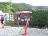 | 大河ドラマの影響はすごい。 資料館では、興味のない3姉妹の説明しており、そうそうに退散する。 入場する時には、そぶりもなかった写真を使った城郭説明を外でやっているではないか! 最後だけは拝聴できたが、残念! おまけに雨の影響で、城郭までのバスは中止と踏んだり蹴ったりでした。 装備なしで3kmの登山をする自信がないので、30城目は出丸までで退散となりました。 |